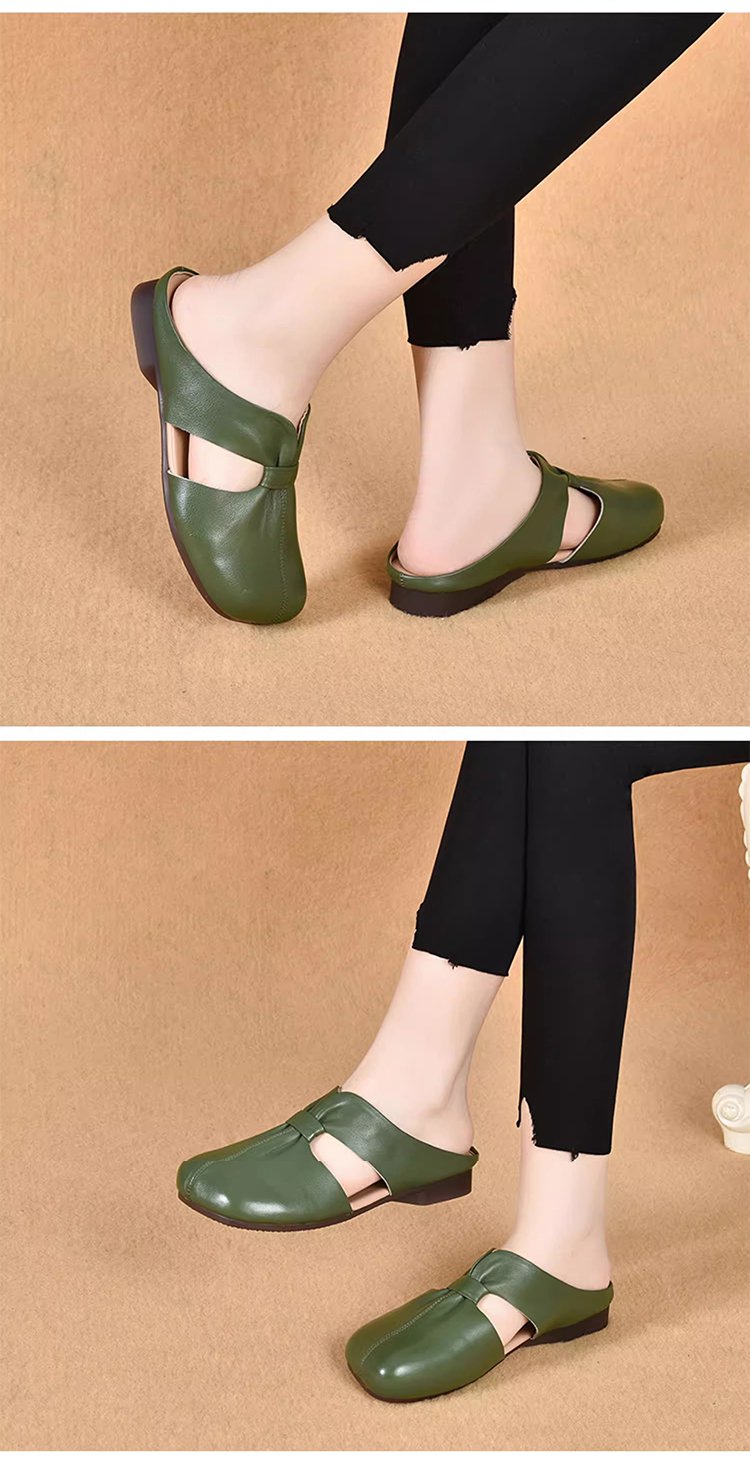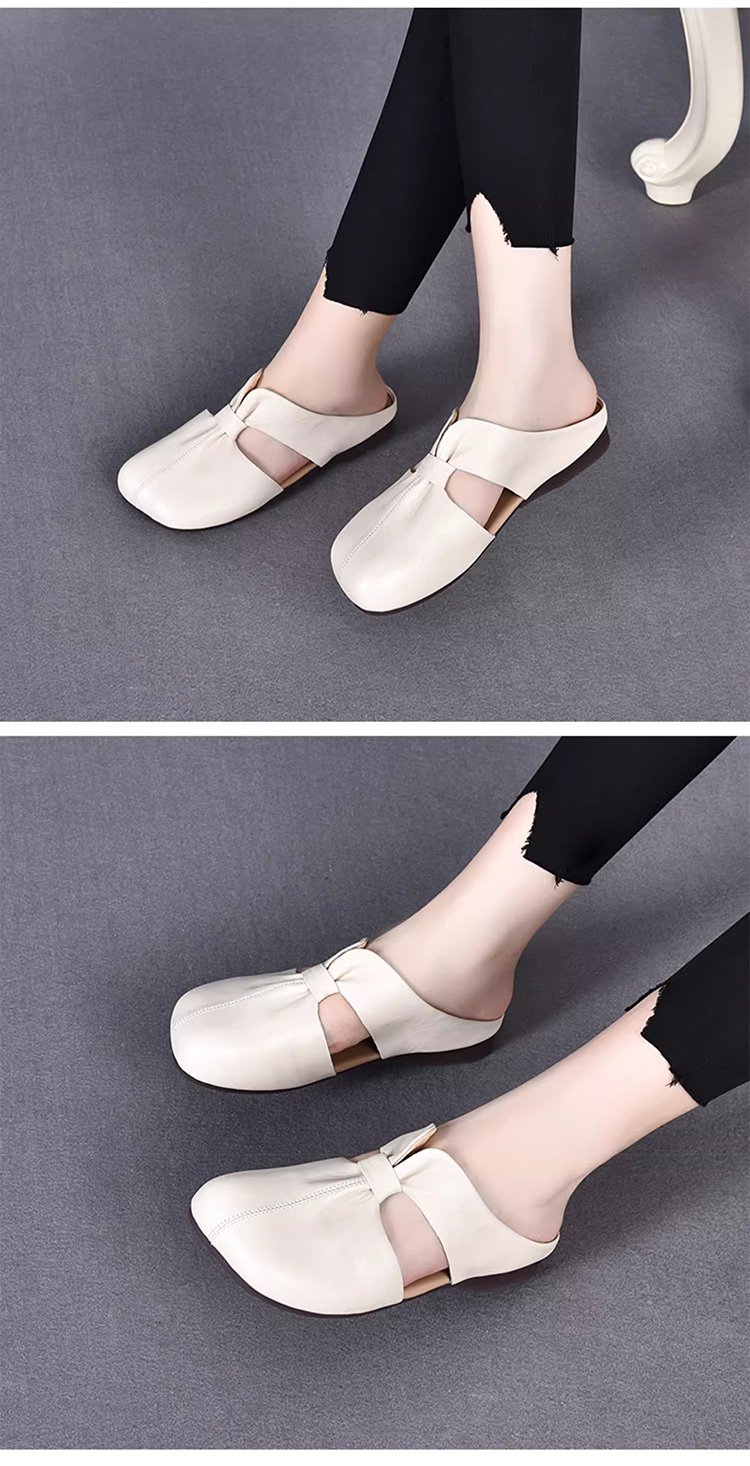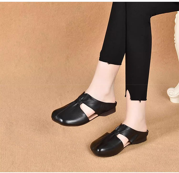 صندل كاجوال راقي مفتوح من الخلف من جلد بقر ناعم ذو مقدمة حذاء مربعة للنساء